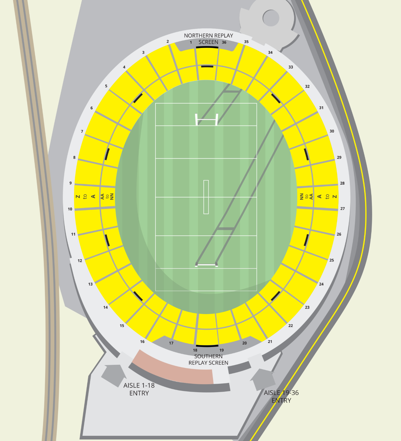Find your way around Hnry Stadium. Locate your seats, discover food and beverage outlets, find the nearest bathrooms, and get familiar before you arrive.